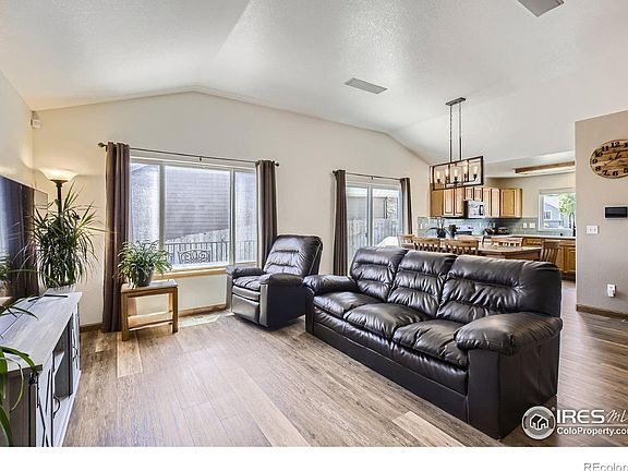 NEW PRICE!!! Don't miss this updated & charming ranch in a prime location with a finished walkout basement! Major recent upgrades include a new class 4 roof (2021), new central A/C and furnace (2023), new 50 gallon hot water heater (2024), newer exterior paint (approx. 5 years old) and SO much more! This home features an airy, open floor plan highlighted by vaulted ceilings and brand new luxury vinyl plank flooring in the great room, dining room, kitchen, hallways, guest bathroom, primary closet and laundry room. Relax outdoors on the two newly updated & spacious composite decks which are accessible from both the dining/great room area and the primary bedroom. The kitchen has been tastefully renovated with new HI-MACS solid surface countertops, new backsplash, faucet, sink, and newer appliances. Outside, discover a generously sized, fully fenced backyard with multiple patio areas alongside the decks, and a storage shed. This property sits on one of the larger lots in the neighborhood and is beautifully landscaped! Located within walking distance to all three K-12 schools, shopping, multiple dining options, and the Loveland trail system. This home also offers easy access to a neighborhood park and playground located just down the street and is only blocks from Loch Lon Park. Low HOA, affordable property taxes and NO metro district!