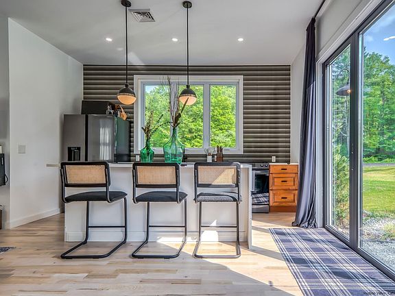 Home. When thinking of the perfectly converted barn in Upstate NY, the dream is of The Barn at Winterberry Pond. Completely renovated in 2022 with a flawless modern aesthetic, this practically new home is sure to impress. Walk through the front doors to a wall full of windows on your right. Step into the large open area which includes the living room and eat-in kitchen. The bathroom is covered in tile and stunningly appointed. Sun-drenched at all hours of the day, the open floorplan provides ample space to easily converse while cooking and sipping on some rosé. Vaulted ceilings keep the space feeling bright and airy as well. Land. The Barn is set back off the road for privacy. There are a number of mature trees on the 7+ acres prime for exploring. Finish off the evening in the very private hot tub with your favorite cocktail. The cleared large yard provides plenty of space to enjoy outdoor fun. Lots of summer afternoons are spent rowboating out on the private pond, with plenty of wildlife to excite and entertain. Use. While The Barn was mostly used as a gathering place among friends and groups, it also turned out to be a successful short-term rental when made available. To make the transfer seamless, the current owner is offering for the furniture to be negotiated as part of the sale or purchased separately with the exception of a few items that hold sentimental value. Additionally, the groundskeeper as well as his wife who provides cleaning services have offered to stay on for the next owner. Surroundings. Sullivan County is known for its bounty of quaint lakes, mighty reservoirs, and quick access to the Delaware River for white water rafting, canoeing, and fly fishing. Less than 10 minutes away from downtown Roscoe and less than 15 minutes from downtown Livingston Manor, you’re a quick drive to essentials, restaurants, antiquing, vintage shops, home goods, retail, and morning coffee with plenty of options to choose from. The Upper Sullivan corridor is best known as the Western gateway to the Catskill Mountains (NYS "forever wild" land) with an abundance of outdoor exploration accessible to all levels of hikers. Its arguably more substantial claim to fame is Upper Sullivan is host to some of the best fly fishing in the country – so much so that Roscoe’s nickname is Trout Town USA and Livingston Manor hosts a trout parade annually. You can stop in at the nearby Catskill Fly Fishing Museum to learn all about it! Fishing not your jam? No worries – these prized creeks and rivers are also some of the best spots for water sports such as kayaking and white water rafting, as well as finding hidden swimming holes and waterfalls. Grab some upstate favorite local brews at Catskill Brewery or Upward Brewing. (Pro tip: Take the hike up the mountain with your beer or sit in front of the fire pit equipped with a pond and mountain view!) On nights that the group is feeling too lazy to cook, there is a plethora of options: Fancy supper at The DeBruce, who were James Beard semi-finalists this year. Live in carb heaven at Northern Farmhouse Pasta who made their pasta with 100% local NYS-grown wheat flour. In the morning, head to the Neon Croissant for breakfast sandwiches or brunch at Spotted Cow Cafe & Grill. Grab a cocktail at The Junction, Arnold House, Do Good Spirits, or the Club Room at the DeBruce. In the winter months, take the 20-minute drive to Ski Hill & Chalet at Villa Roma Resort for skiing, snowboarding, and tubing – a bit further, Hunter and Belleyare Mountains offer additional slopes. Nearby downtowns include Callicoon (Catskill Provisions Distillery, Seminary Hill Orchard & Cidery, the very Wes Anderson-equse Callicoon Theater, Grizzly Bagels, Bà & Me, The Callicoon Pantry, The Western Inn & Restaurant, Spruce Home Goods), Bethel (Bethel Woods Center for the Arts - the original location of the Woodstock Festival!, Java Love Coffee, Catskill Distilling), Liberty (Walnut Mountain Park, another very Wes Anderson-equse
