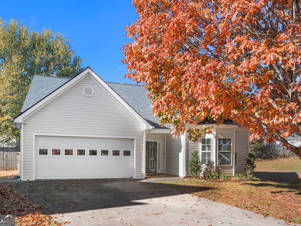Welcome to your future haven in Holly Springs - a charming 3-bedroom, 2-bathroom ranch-style home. This lovely abode, spread across 1,415 square feet, offers a delightful blend of comfort and potential, ready to be transformed to fit your unique style with the seller offering a generous $10,000 flooring allowance. As you step through the entrance, a welcoming foyer greets you, branching off to two cozy bedrooms and a full bath on the right-ideal for office space, guests, or personal use. Continue forward to discover the heart of the home: a spacious kitchen boasting abundant cabinet space. The opening in the kitchen allows for viewing to the living and dining areas, where you can enjoy a cozy fireplace and a dining space ample enough for six. The primary bedroom, accessible from main hall near the the living room, is a private retreat featuring a personal bathroom complete with a soaking tub, shower, and a walk-in closet-perfect for unwinding after a long day. This home offers a fenced backyard and is at the end of a cul-de-sac, ensuring privacy and tranquility. Just minutes from the future Holly Springs Entertainment District and a short drive to Lake Allatoona.