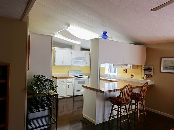 Beautifully remodeled manufactured home on permanent foundation tucked away on 5 private, quiet acres, includes HUGE metal 8 car garage / shop. Pride of ownership throughout! Gorgeous decking, fenced in garden area, apple trees, attached garage & carport and separate large wood shed. Home has a split bedroom floor plan with plenty of natural light, wainscoting, crown molding, ceiling fans, recessed lighting, gorgeous laminate wood floors, carpet and radiant heat under tiled bathroom floor. New dual pane vinyl windows in 2013, new roof in 2005, exterior paint last summer. Wood stove, monitor and F/A electric. Extra large master suite, bathroom has dual sinks, marble counters and beautiful tiled shower. Property has seasonal views of The Eddies & Black Butte. Located just 10 minutes from town! Don't miss this home.