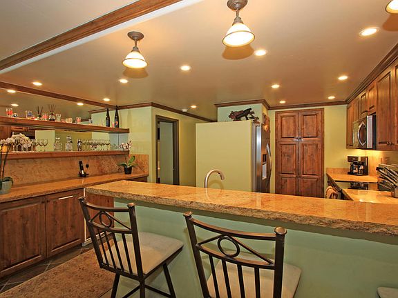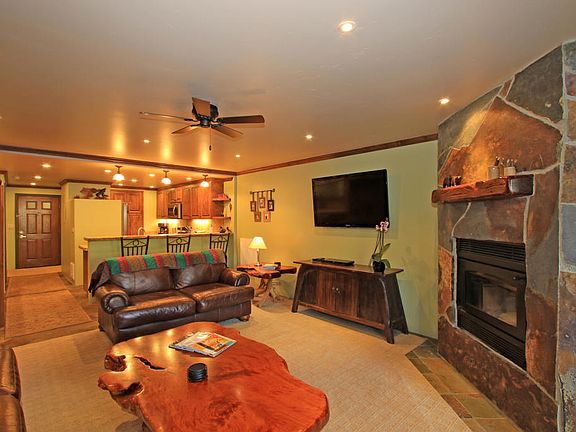 ~ RARELY on the market. Incrediable views of Canyon Lodge, SKI SLOPES & LINCOLN Mountain. WALK-OUT onto huge deck to the lodge, Gondola to get to the Village or to your private BBQ right outside the dining room slider for spring, summer and fall months. This condo is located in Tower Section with GARAGED parking. All slab granite counters & custom knotty alder cabinetry throughout. Slate flooring throughout. Carpet in bedrooms. Handmade custom furnishings. Custom stone fireplace. Large dry bar w/ bar frig. Mr. Steam, STEAM SHOWER. King bed in master bedroom along with Queen Murphy bed and custom built-in cabinetry. Queen bunk beds in 2nd. Bedroom. WASHER & DRYER inside, TURN-KEY, fully stocked kitchen, newer appliances. Newly cream PAINT throughout, (not shown in pics). Brand new 75' TV. Portable A/C. Shuttle stop located across the street. HOA Amenities: 1 outdoor swimming pool, 3 hot tubs, sauna, lounge with ping pong table, Foosball, large screen TV. This building has an elevator. Excellent rental INCOME. Visit www.VRBO.com/338545. for more pics. 200 + reviews.