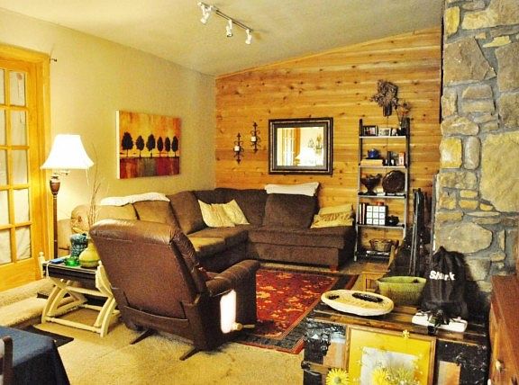 Seneca basement home with 3 bedrooms and an office! 2 car garage and carport, double-sided fireplace, remodeled kitchen, living room, and family room. Deck off the master bedroom, 2 concrete patios, large lot.