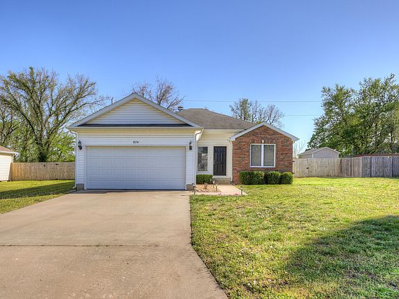 Well maintained 3 bed, 2 bath Webb City home! Front living room features a wood burning fireplace and flows nicely into the kitchen. Kitchen boasts wood cabinets, black appliances, a dining space, and access to the back deck. Primary bedroom suite features tray ceilings, dual sink vanity, and his/hers closets! 2 more bedrooms share a full hall bathroom. Large utility room with washer/dryer connections and extra shelving! Backyard is fully fenced with a wooden deck. 2 car garage. Located by King Jack Park, with close access to Madison St and MacArthur Dr! Call to schedule a tour today!
