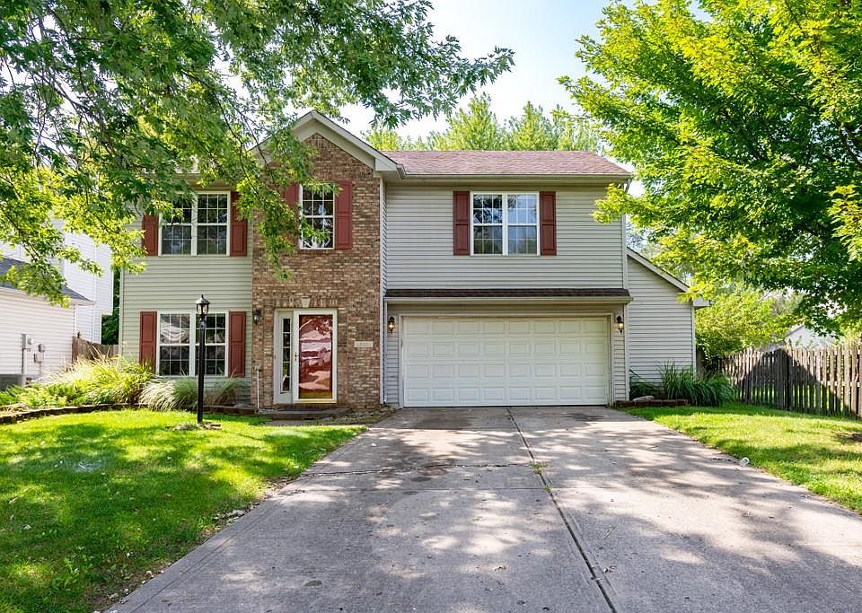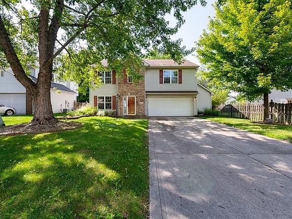 Located in Foxberry Trace, in the heart of Center Grove, this 3 bed 2.5 bath 2 story offers a full fenced private backyard, covered LARGE back deck area perfect for entertaining, concrete patio w/ elec hook up. Main level has HUGE Living room and open floor plan. Oversized storage/pantry area in laundry/utility room space. (Costco storage!) Upstairs has JACK-N-JILL bath and an ENORMOUS primary suite with vaulted ceilings, walkin closet, and primary bath. Garage has bump out for workshop/storage space. Fresh carpet and paint throughout. This is a great opportunity to come put your colors on the walls and bring your own decor on this great CG find. (Hot Tub not included )