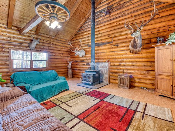 A great opportunity to own your Montana dream home. Located a couple minutes south of Hamilton nestled amongst the pine trees in an established small neighborhood, you will find this comfortable 3 bed 2 bath log home. Relax by the wood stove and enjoy watching the wildlife from many angles.. The tall vaulted ceilings and skylight allow for plenty of brightness. Spacious recently remodeled kitchen and dining area are open to the living room. Walk in pantry and laundry area share space leading to the back yard. Large upstairs bedroom includes private bathroom , 2 closets, and walk out deck area. Cozy sitting area/loft overlook the rustic wood ceilings. The exterior of the home is freshly refinished with a great heated garage-workshop to match the house.