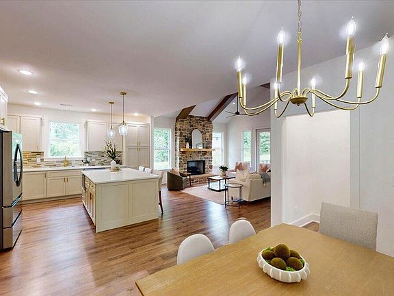 Welcome to this beautifully crafted newly built 3-bedroom, 2-bathroom home that seamlessly blends modern luxury with everyday comfort. From the moment you head inside, you'll be greeted by soaring high ceilings, elegant beams, and an abundance of natural light. The heart of the home features an open-concept living space adorned with beautiful flooring and anchored by a striking stone-faced fireplace, perfect for cozy evenings or entertaining guests. The chef-inspired kitchen boasts high-end finishes, sleek cabinetry, beautiful countertops, and stainless steel appliances, offering both style and function.