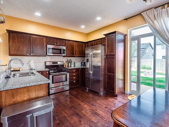Built in 2011, this custom home has it all! Master suite on both the main level AND upper level. Four bedrooms, 3.5 baths, storage galore, and hardwood flooring throughout. Kitchen has a "wow factor" with stainless steel appliances, gas range, granite, and subway tile backsplash. All appliances stay on this one, including the stainless gas BBQ! Yard is fenced and features a brick patio, fire pit, chicken coop and fruit trees. Must see!