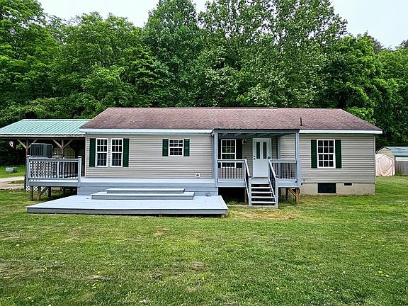 Great location, modular home ON Cartoogechaye Creek.. great fishing in Cartoogechaye Creek, level grounds, private..recently updated with new HVAC, flooring, deck, kitchen and more.