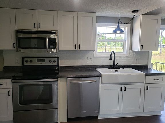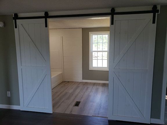 Gorgeous Remodeled 24x60 Home with 2 bedrooms and 2 baths, metal roof, luxury vinyl plank floors, stainless steel appliances, new AC, barn doors, new porches, new septic tank, on 1 Acre across the road at Lake Mayers. 826 Max Deen Dr, Baxley GA. $92k.