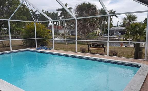 Desirable Cape Coral Yacht Club!! Well taken care of 4 BEDROOM 3 BATH pool home on DIRECT GULF ACCESS CANAL! 10,000 lb boat lift with concrete dock! Features formal living room and separate family room. Tiles floors throughout including bedrooms! Kitchen features raised panel cabinets and newer stainless steel appliances including double convection oven. Newer washer and dryer included. A/c is only 3 years old!! Newer windows throughout. Brand new pool pump motor. 4 sets of sliders lead out to the large pool!! Large yard with avocado and mango trees. Home is located very close to the Cape Coral revitalization and redevelopment of the Bimini Basin area!! Seller is replacing the sliders leading out to pool area.