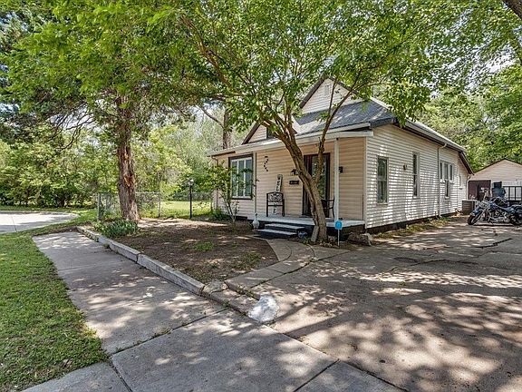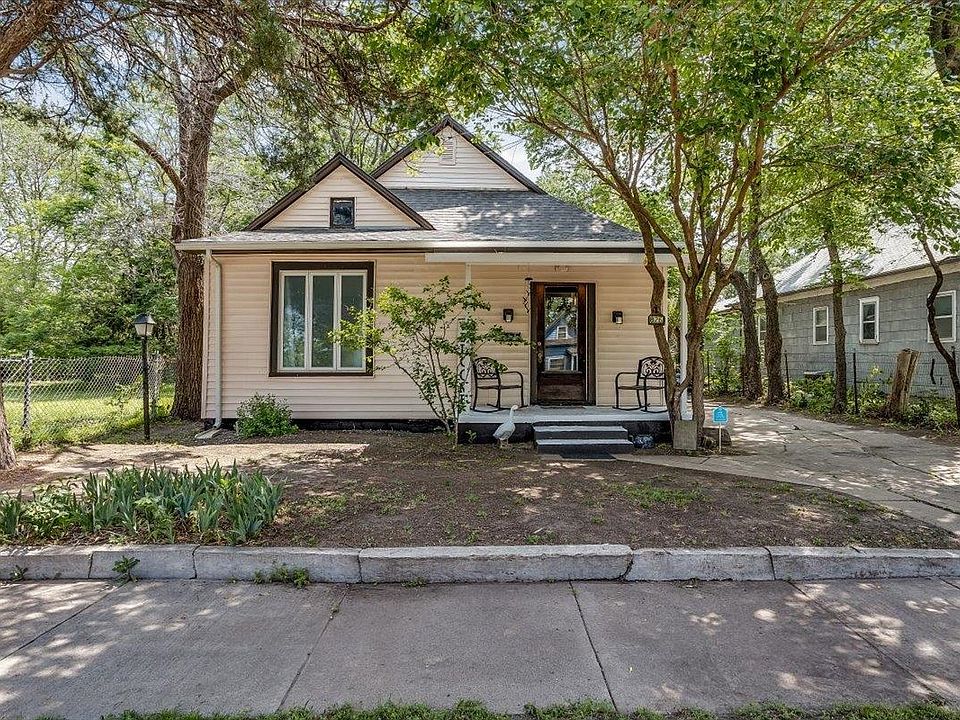Mathewson is slated to be where you start your family tree! Step into the captivating charm of history and artistry with this beautifully restored historic home. Nestled in a quaint and quiet neighborhood, this gem showcases meticulous attention to detail and thoughtful preservation of its heritage. As you enter, be prepared to be transported back in time. With 3 bedrooms and 1 bathroom, this residence seamlessly combines classic elegance with modern amenities. The custom artwork infused into the floor tells a unique story, capturing the essence of the neighborhood's rich history and adding a touch of artistic brilliance to every step you take. The heart of this home is the enchanting bakery spot, a haven for culinary enthusiasts and creative souls alike. With an abundance of counter space, you'll have plenty of room to whip up delicious treats and showcase your baking prowess. Beyond the main house, a spacious outbuilding awaits, offering a versatile workman space that can be customized to suit your needs. Privacy and tranquility await as this property boasts no neighbors to the north and is situated on a cul-de-sac. Don't forget the brand new roof and heating and air!