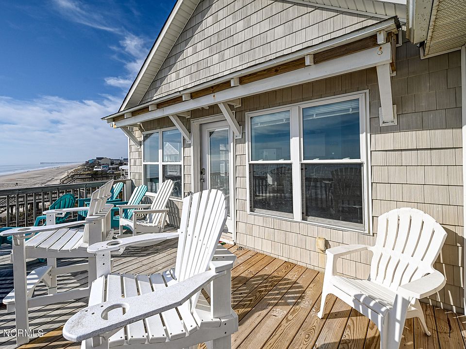 Amazing VIEWS from inside and from the multiple decks---Oceanfront--- 4 bedroom, 3.5 bath --- beautifully decorated --- vinyl plank floors throughout for easy maintenance---open floor plan easily accommodates a group ---incredible rental. Did $148,000 in 2022---Assumable flood insurance of $1,322--- Remodeled in 2020 with New HVAC, floors, appliances, granite, washer/dryer and furniture ---This one is completely ready for use and rentals--- come enjoy Topsail Islands pristine sandy beach---- relax while you listen to the waves---watch the dolphins frolic in the surf