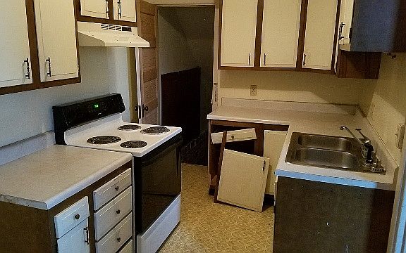 Duplex home in rough shape. Property is being sold as-is where is. Any appliances in the property will stay but have no warranty or guarantee that they work. The fence around the back yard may need some work but could contain small children or pets. The home has some beautiful wood work and a nice wood staircase. With a little work this could be a great investment property.