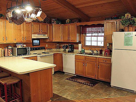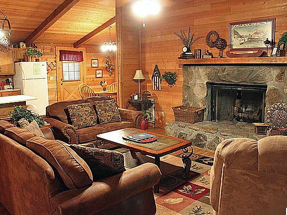 2 bedroom, 2 bath log cabin with a bonus room currently used as a 3rd bedroom. Sleeps 8 on overnight rental. All one level with only a few steps to enter the home. In a private setting with a wooded view and plenty of parking. Features include a gas log fireplace, cathedral ceiling, covered deck, and a hot tub. Comes fully furnished and decorated!