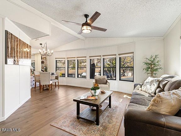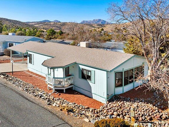 Fabulous location in Prescott Canyon Estates 55+ community. Spacious corner lot conveniently located minutes away from shopping, restaurants and the vibrant downtown area of Prescott. Freshly painted interior, Pergo flooring, granite countertops, Pella windows, stainless steel appliances, updated bathroom vanities, custom window coverings and thoughtful finishes throughout. Charming enclosed sun porch. Light & bright flex space for crafting, entertaining or taking in the beautiful views of Granite Mountain! Ample storage throughout. Double carport featuring a large built-in shed/workshop. Steps away from the clubhouse and all the amenities it has to offer. Indoor pool, pickle ball, tennis courts and community kitchen. Welcome home!