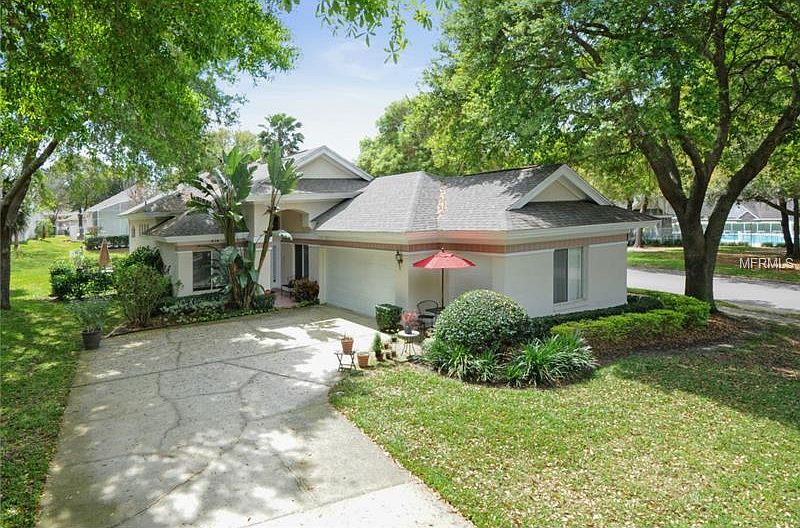 This home has been very well maintained. There are 2 bedrooms and a den/study that could be used as a third bedroom. It has an open and airy floorplan. It is located in beautiful Errol Estates. Enjoy golfing, tennis, swimming, dining, and shopping. Attractions and the airport are convenient using 451/429. The large sunroom has its own heating and AC so you can open it up on cool days and enjoy the outdoors. It has a two car garage with a golf cart garage. The fireplace adds a nice touch to the living room and dining room. It is care free living at its best with mature landscaping and nature all around.