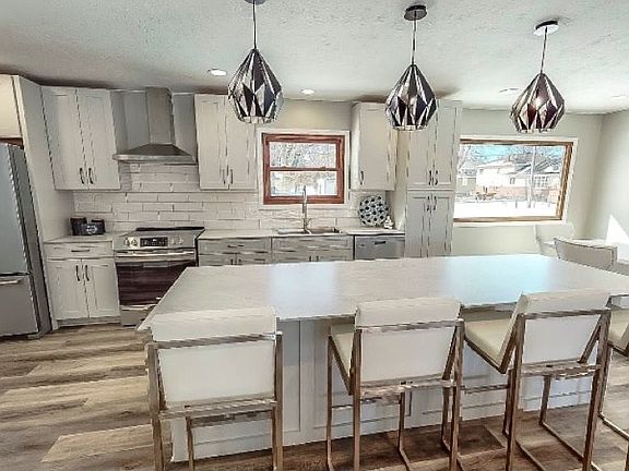 Beautifully remodeled 4 Bedroom, 3 Bath Ranch Style Home! Enjoy a Move-In ready home with updated electrical and plumbing, all new flooring, new water heater, newer windows. In the gorgeous kitchen you have all new kitchen cabinets, counter tops, tile back splash and all Stainless Steel Appliances stay. The master Bath has his-and-her sinks, walk in tile shower and soaking tub. This home features tile fire place, main level laundry, a finished basement, 2 car garage, underground sprinklers and so much more!