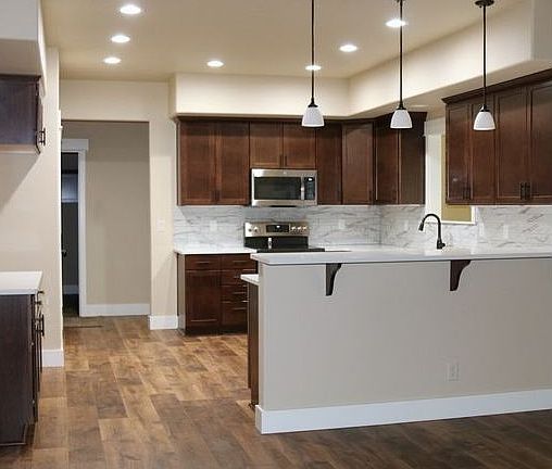 Beautiful new construction in one of Hermiston finest neighborhoods. 4 bed 2 bath home that Is turn key!! Walk in marble double shower in master, Laminate flooring, under cabinet lighting, fenced, landscaped, TUGS, quartz counters in kitchen. Homes are selling fast so don't wait!!