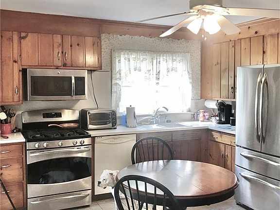 This charming Cape Cod home is surrounded by landscaped lawns, stone walls, and pastoral views. The eat-in kitchen has a stainless gas range, microwave and refrigerator. Off the kitchen is a large laundry room with quality front-loading washer and dryer that will remain with the property. The large upstairs bedroom and bath have been serving as the master suite for many years. An enclosed porch off kitchen and a large rear deck with awning overlooking the private back yard offer great opportunities for entertaining. Large detached two-car garage workshop and shed as well as the clean, dry full-basement provide ample storage. This solidly built and well maintained house is ready for new owners and awaits your vision for its next chapter of memory making. House is being sold "as is" and any inspections are for buyers' purposes only.