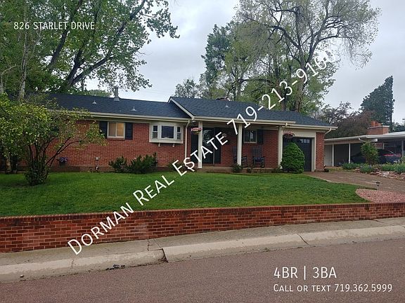 This 2707 square foot single family home has 4 bedrooms and 3.0 bathrooms. This home is located at 826 Starlet Dr, Colorado Springs, CO 80905.