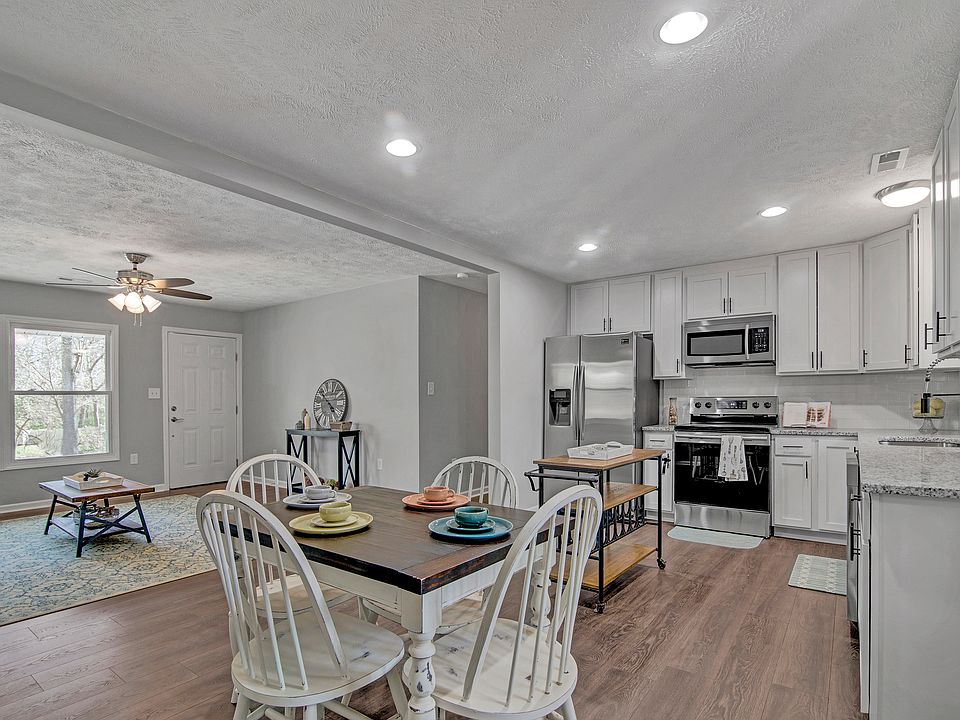 MONTCLAIR $113,000 3BR/2BA. Look no further! Centrally located in Fayetteville, this renovated ranch is sure to please. Walk right in to open concept living with a clear view to the kitchen and dining spaces. This stylish kitchen features new white shaker cabinets and hardware, granite countertops, stainless steel appliances, and subway tile backsplash. New flooring throughout the home, including laminate in the common areas, carpet in the bedrooms, and porcelain tile in the bathrooms. New tubs, vanities and bathroom hardware. Fresh paint and fixtures. Situated on the rear of the home is an extra living room or flex space with sliding glass doors leading outside. Enjoy the sizable fenced yard from the back deck. Large attached carport with an outdoor storage room. Indoor laundry. New roof, windows and siding. (826S)