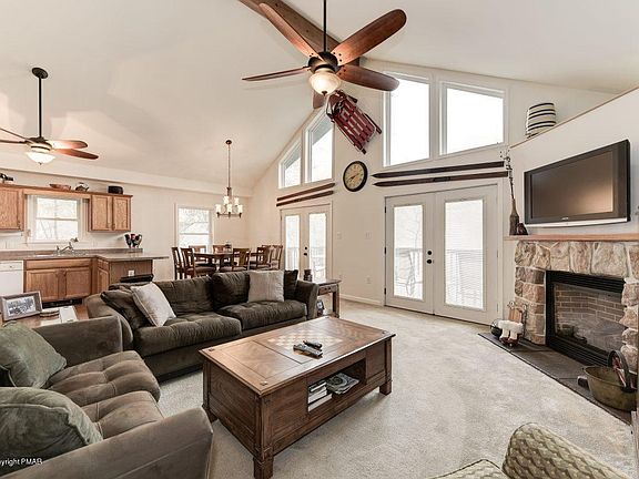Look no more! Your Pocono Mountain escape is here! This beautifully maintained 4 bedroom, 2 bathroom home comes with all that you need to move right in or begin renting. Perfect for entertaining or just getting away and relaxing. Close proximity to ski resorts and in a community with a large lake/beach, swimming pool, tennis courts, and basketball courts. Don't delay, this house has everything you could need for years of enjoyment. Listed below are just some of the features that come with this property: All furniture included except display case in living room Lots of natural light Cathedral ceiling Large family room with/Pool Table, Ping pong, Air hokey, all included Never rented but ready to rent or be enjoyed by people Gas fireplace