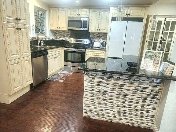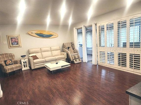 Step into this beautifully remodeled, light-filled Casa Linda model – a rare, ground-level home with no stairs. Enjoy the convenience of parking right in front of your manor for easy grocery trips, or use the nearby carport just steps away. This elegant home features a gourmet open kitchen with granite countertops, a center island, and a water-purifier line plumbed directly to the refrigerator for ice and chilled water. Dual-pane windows, smooth ceilings, designer light fixtures, and engineered wood flooring (except tile flooring in the bathrooms) create a bright, modern feel throughout. The primary suite boasts mirrored closet doors, an upgraded bathroom with a walk-in shower and glass door, plus a charming window. A stacked washer/dryer is tucked neatly into the primary bath closet for ultimate convenience. The second bathroom features a shower-tub combo with glass sliding doors. Enjoy the enclosed front patio for extra living space (not included in the square footage) – perfect for your hobby room, exercise bicycle, or morning coffee or evening relaxation. It even has handicap access toward outside of the bldg via walker or wheel chair. This is a truly one-of-a-kind home for the sophisticated buyer. Visit today before it’s gone, and enjoy the life style of the Laguna Woods Village, Southern California, Orange County’s best kept 55 plus active retirement community with numerous amenities: 5 swimming pools, 7 Clubhouses, 2 fitness centers, a 27 hole golf course with its own clubhouse & a restaurant, and a 9 hole par 3 executive golf course, an equestrian center, wood workshop, a ceramic/sculpture studio with kiln, sewing room, tennis complex, and much more. Over 250 social clubs to join. Free bus service within the Village or to the nearby shopping & medical centers. 24 hour guard gated community for your safety, located close to freeways, medical facilities and approx. 7 miles to Laguna Beach.