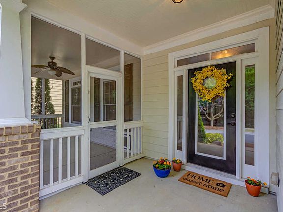 Perfect master on main in sought out North Gwinnett High's Village Grove community. Level Creek Elementary! Just painted throughout! Charming screened front porch with drop down shades, hardwoods throughout main, updated kitchen w/ granite, stainless appliances & tile back splash. Double sided fireplace shared between great room & all seasons sun room. 2nd floor features a large bonus room perfect for office or play area & full bath. Pergola and side patio. Swim tennis community! Easy low maintenance lifestyle- landscaping & waste removal included in HOA fee. Wonderful community with tree lined sidewalks, community green space & playground. Close to the best of Suwanee life: Sim's Lake Park, restaurants, shopping, & the Town Center.