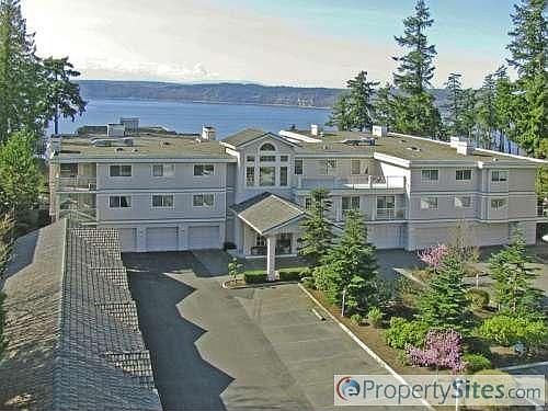 Complete info: http://bluffs.ePropertySites.com - Gorgeous ground level condo in the Bluffs. Home offers beautiful views, open floorplan, bright & sunny kitchen, upgraded finishes, plush carpeting, tile accents, private garage, storage unit, club house, craft / hobby room, secured building, Inside Garbage, Dart Van Service & much more. The Bluffs offers park like grounds & paths with incredible unobstructed views of the sound. Enjoy sunsets on your deck & bright and sunny days inside your cozy place. Downsizing here & you won't give up living around nature & beauty.