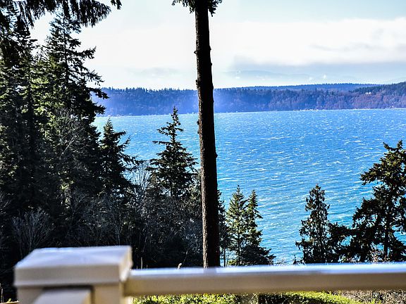 Mountain & Puget Sound views from dining room and private balcony are complemented by great natural light in this south-facing, well-maintained & spacious home. In addition to 2 parking spaces (one in private garage), unit features en suite 3/4 bath and walk-in closet, updated appliances (all included), fireplace for cozy winters, & additional dedicated storage on ground floor. Well-managed HOA. Easy access to all local amenities. Make the peaceful & serene setting of The Bluffs your next home! And don't miss the 3D Virtual Tour!