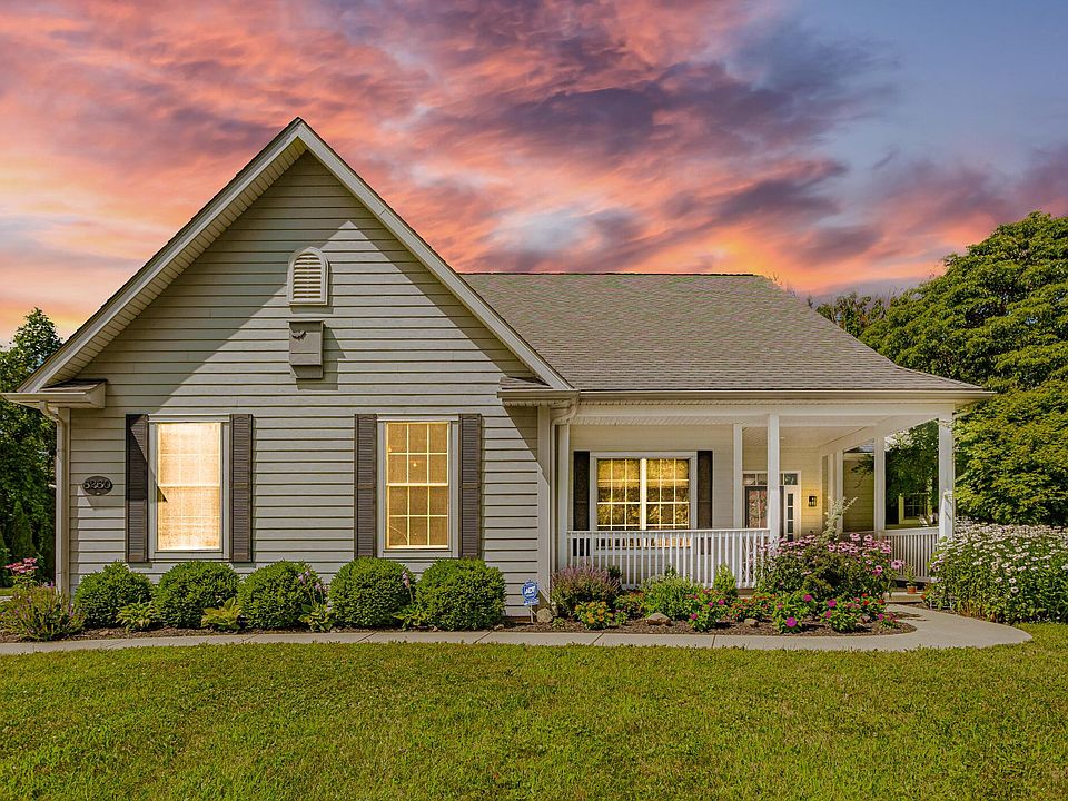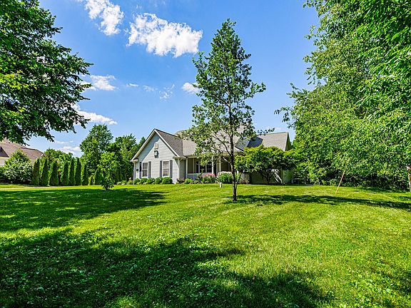 Beautiful Custom Ranch on 1.68 Acres! Fenced Private Lot Surrounded by Mature trees. Open Floor Plan with Soaring Ceilings, Gorgeous Hickory Floors, Granite Countertops, 42' Maple Cabinets, Island and Breakfast Bar! Owner's En Suite features Vaulted Ceiling, Garden Soaking Tub, Stand alone Shower, and Custom Closet! Additional Two bedrooms have Adjoining Full Bath. Bonus Room would be perfect for Den, Formal Dining or Multi Use Room. First Floor Laundry! Full Basement with Full Bath Rough-In. Relax on the Covered Front Porch or Back Patio! Oversized two car garage Large Storage Shed. Whole House Generator, Gorgeous Landscaping with easy maintenance, and so much more!