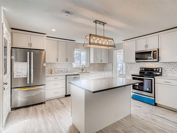 Location..Location..Locaation... Directly across from Lake Arbor on a quiet cut-de-sac. Walk out the front door to see the Lake and Mountain Views. This home is SERIOUSLY NICE. Open Concept Floor plan Tons of Natural Light both up and down stairs. Completely UPDATED "Top-to Bottom" "Inside and Out". New Floors and Paint throughout, 3 New Baths with top-of- the line finishes, New kitchen w/ Quartz, New cabinets, New Appliances, New Electrical Panel, 3-Egress windows in the Basement, Professionally Landscaped, Sprinkler, Master Bath, 2 Family Rooms, New Custom Garage Door, Covered Patio and Front Porch to relax enjoy the beautiful views right out your front door. The lake offers a park, trails for walking, running or bicycling, playground, fishing, non-motorized boating, kayaking, small sail boats and canoeing. DON'T MISS THIS ONE. Blue Ribbon Home Warranty with FPO. All Work done with Permits and Finalized by City of Arvada. HOA is Voluntary $35 per yr. Application by Homeowner is desired.