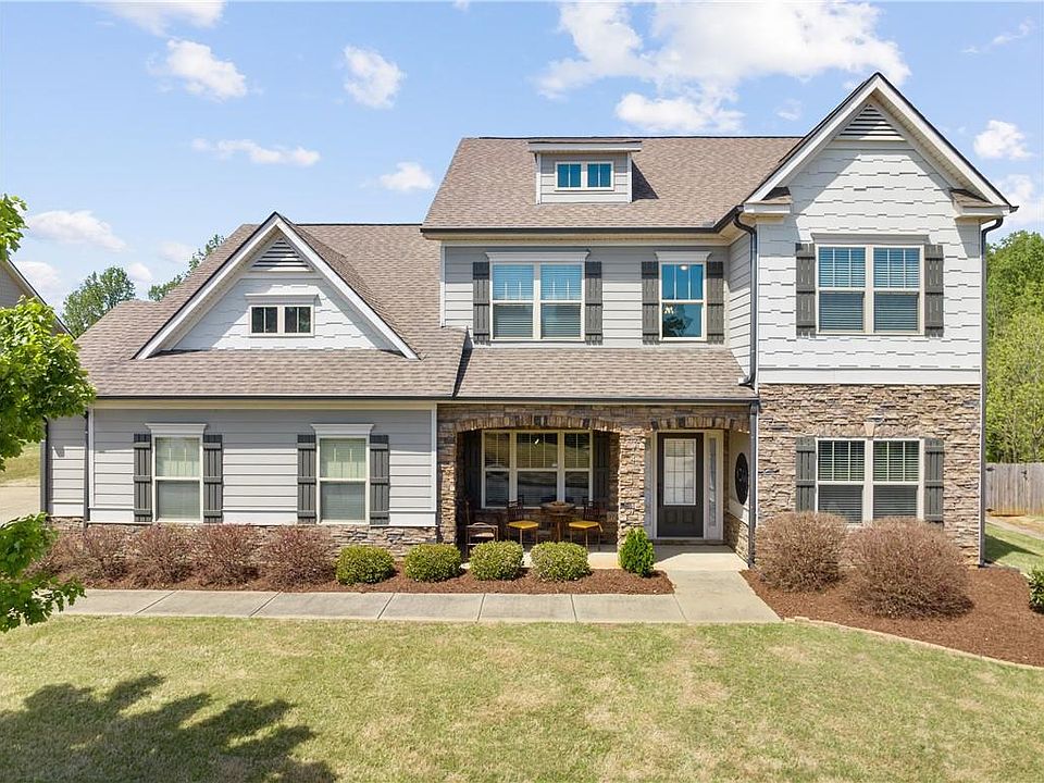 Moving to the beautiful area of North Georgia? Nestled in the foothills of the Blue Ridge Mountains...What a deal!! Assumable at 4.375%!! This fabulous 3400+sq ft home, .75 lot in the family friendly neighborhood of Riverstone Plantation located minutes from the 400 shopping and medical in awesome Forsyth County. Less than 1 mile from the brand new East Forsyth High School! Amenities include a park, basketball courts, adult and baby pool as well as tennis courts. The beautiful front porch and custom metal address sign begins your journey...This relatively new (2016) 5 bedroom 3.5 bath home is perfect for YOUR growing family! Dark wood flooring throughout main floor as well as carpeting in designated areas. The large Primary bedroom, with trey ceilings, is located on main floor with an extra spacious sitting area (perfect for a home office/nursery) which has separate entrance to backyard. Primary bathroom continues with dual vanities, sunk in tub, tiled shower and separate water closet. Not to mention, the HUGE walk in custom organized closet with sitting area. Rounding out the main floor, Formal Living Room and huge 12 seat Dining Room for those large holiday gatherings, half bath as well as large kitchen with abundance of storage cabinets, granite countertop breakfast bar and stainless steel appliances with walk in pantry and separate kitchen dining area. Open high ceiling family room is extremely spacious with marble gas log fireplace and perfect for those cozy Christmas gatherings. Up the double staircase hosts 3 large separate bedrooms, a full bath as well as a jack and jill full bathroom and an added extra large 5th bedroom/playroom/media room, whichever your heart desires!! BRAND NEW washer and dryer stay! Large completely fenced backyard that backs up to trees and no neighbors behind you! Trampoline, Playhouse w/slides and swings and full wooden swing set included. Tankless water heater and many Smart Home features as well as Ring security system. Minutes to Cumming, Dawsonville, Gainesville!