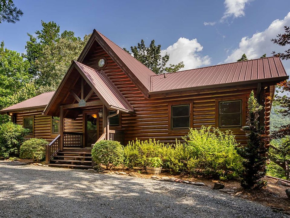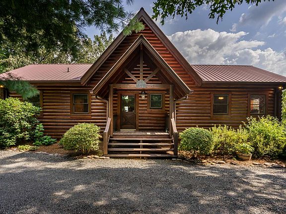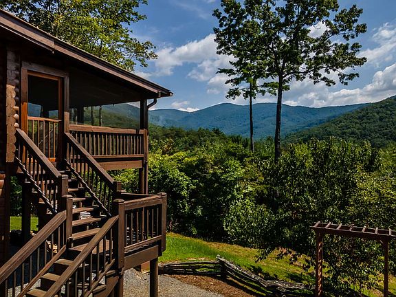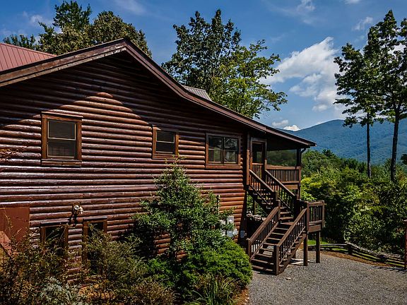 Nestled within the picturesque landscapes of Cherry Log, this charming yet spacious cabin sits on 5 PRIVATE acres, offering a tranquil retreat in the heart of nature and LONG-RANGE MOUNTAIN views! Featuring a blend of rustic elegance and modern comfort, this spacious cabin has 4 bedrooms with an open loft perfect for office space, craft area or quiet reading nook, open floor plan w/floor to ceiling fireplace in lodge room, gourmet kitchen w/large eat-in island open to more dining area. Walk out into the screened-in porch w/fireplace and extra outdoor seating for entertaining or visit the finished terrace level where you find a cozy fireplace, wet-bar/kitchenette for more fun! Comes complete w/installed whole-house generator! Surrounded by the beauty of nature, the property boasts expansive acres of serene land, providing ample space for parking OR room to build another home with the same YEAR-ROUND MOUNTAIN VIEW. Whether you seek a peaceful getaway or an escape from the hustle and bustle, this cabin offers the ability for short term rentals or keep as your very own mountain retreat!