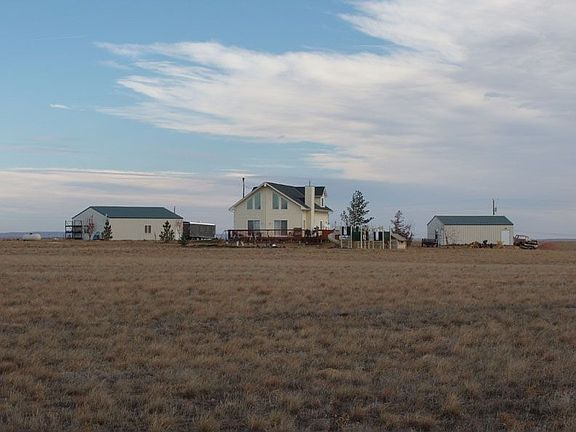 We are meeting with a realtor to set the sale price of this home by March 1, 2013. The price shown is a guess. This is an open floor plan with vaulted ceilings and a recent remodel/refresh. Neighborhood Description Update: The house was appraised in October 2010. Contact us for appraisal details. Additional update: The interior has undergone a remodel. An oak laminate floor has been installed in the kitchen. Installed in the living room, dining room and hallway is a very unique South African leather floor tile that adds a very bold touch and warmth to the home, while remaining as durable as ceramic tile. This quiet acreage is situated so you can drive less than 10 miles to gain access to restaurants, gas stations, banking and a grocery store. At the end of the day you can kick back on the wrap around deck and watch the kids play on the large playground set while looking at a stunning view of the front range mountains including Pikes Peak. The house has a monstrous master bedroom on the second floor (with two walk in closets), two bedrooms on the main floor and two bedrooms in the finished basement. One of the bedrooms in the basement has been converted into a craft/hobby room with cabinets and extra lighting. This house is a perfect place to raise a family. The 28x32 living room/dining room area has open ceilings to the second floor with windows on both levels. This room is the show stopping feature of the house. It allows for panoramic viewing of the mountains while entertaining large groups of family and friends. In the basement the rec room is a mirror image of the main living room with a dry bar in one portion of the room. The detached garage is large enough to accommodate two cars with plenty of room left for lawn tractors, motorcycles, atv's or whatever your heart desires. The large (1200 sq/ft) heated and air conditioned workshop will easily hold four vehicles with plenty of room for tools and equipment.
