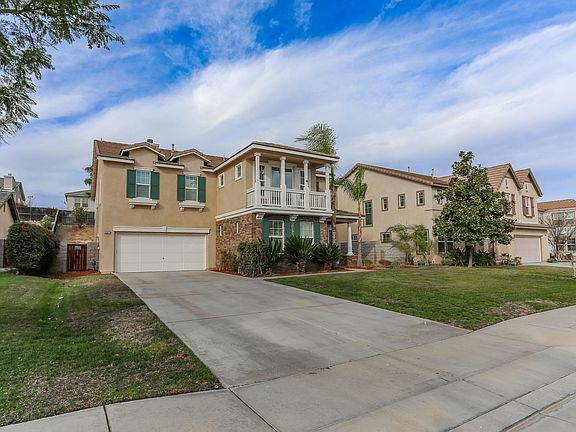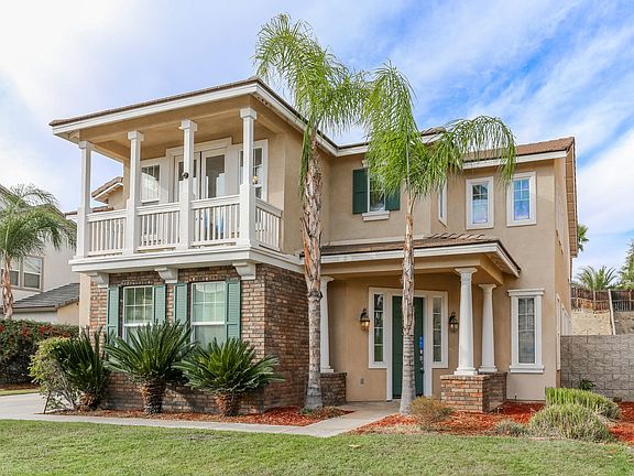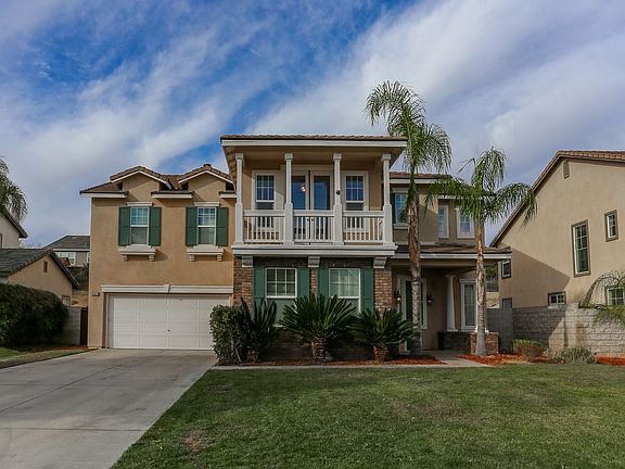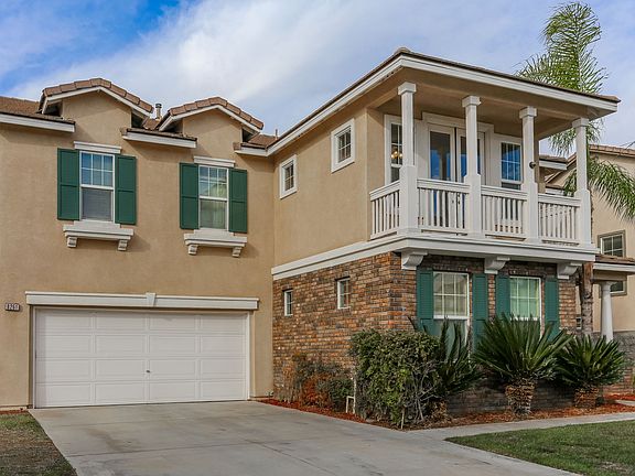 Beautiful 5 bedroom, 4.5 bathroom, 2 story home with a main floor bedroom in the community of Orangecrest in Riverside! Enjoy an open floor plan with a formal entry, a grand, dual staircase, and formal dining area. The kitchen offers tile countertops, cherrywood-style cabinetry, and a breakfast nook. The family room features an inviting fireplace with sliding doors to the back yard. The upstairs primary suite offers a large, walk-in closet, two separate vanities, a large soaking tub, and shower. Additional property highlights include a private balcony, a spacious living room with vaulted ceilings, serene ceiling fans, a laundry room, and a 3 car garage. Convenient to area schools, parks, and easy access to major freeways!