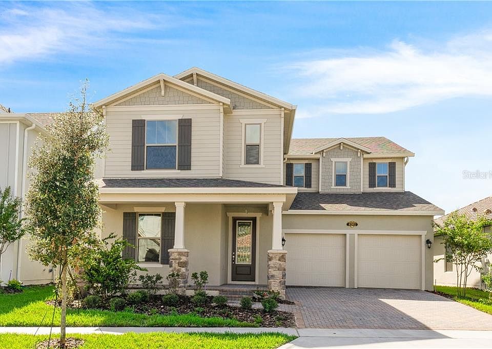 READY NOW! Enjoy relaxing evenings on your front porch as you watch the sunset. This inviting ENERGY STAR Certified home features 5 bedrooms, 3.5 baths, LOFT, Covered Lanai and a 2-car garage. Entertaining is a breeze with this floorplan, the Great Room and Dining is open to the Kitchen which features 42" cabinets with crown molding, quartz countertops, stainless steel appliances (including Double Ovens & GAS Cooktop), walk-in pantry and small Office Nook. Two downstairs Secondary Bedrooms are perfect for a guest suite and an office. Stunning 6"x36" Wood-Looking porcelain tile in the main areas. Mission-style stair rails lead to the second floor where a large Loft gives you a secondary living space for entertainment. Unwind from the day in your Master Suite with large walk-in closet, dual sink vanities with quartz counters, Garden Bath with soaking tub and semi-frameless glass shower with dry-off area and privacy lavatory. ENERGY STAR features with R-38 Insulation, 15 SEER HVAC and Tankless Gas Water Heater provide savings with Low Utility Bills. Located close to 429, Disney and Hamlin Shops. Windermere Isle offers residents a Community Pool, Cabana and Playground. HOA includes Lawncare and Fertilization.