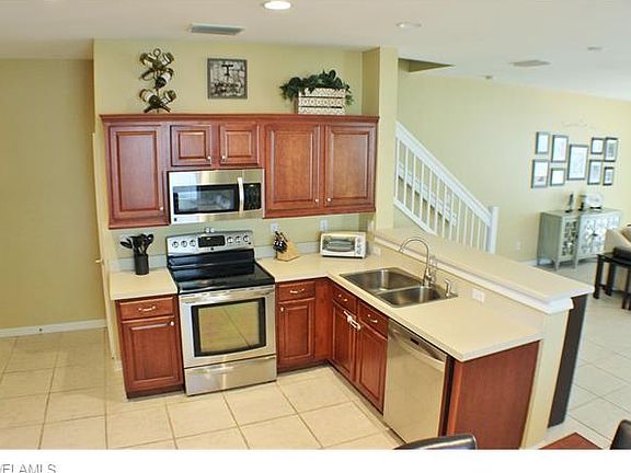 Rarely available 2 story lakefront townhome end unit with Southern rear exposure! Just a few doors from the community's pool, this home has been very tastefully decorated! Very clean with designer colors and appointments throughout! There are many upgrades and items worth noting within this highly sought after townhome. Some of the many features include: screened lanai, 18" tile throughout downstairs, upgraded cherry wood cabinetry with crown molding and light bar in the kitchen, extended walk-in pantry for extra storage, stainless steel appliances, custom master bath vanity and shower, custom built-in closet shelving, ceiling fans in all rooms, and window treatments throughout are just to name a few. This home is better than if Pulte had built it yesterday! If you are even remotely interested in Lakewood Village you need to see this one quickly. You will not be disappointed!