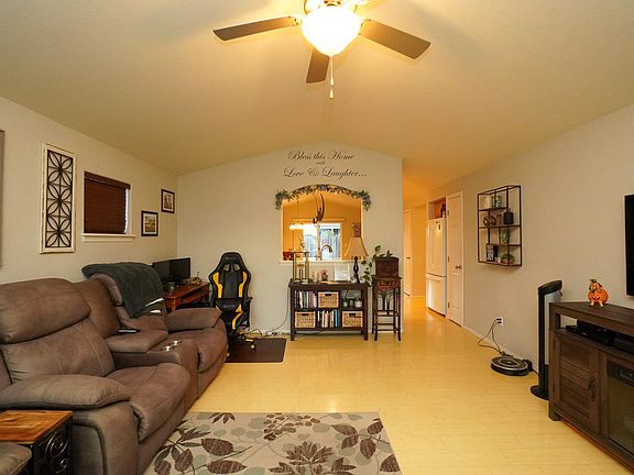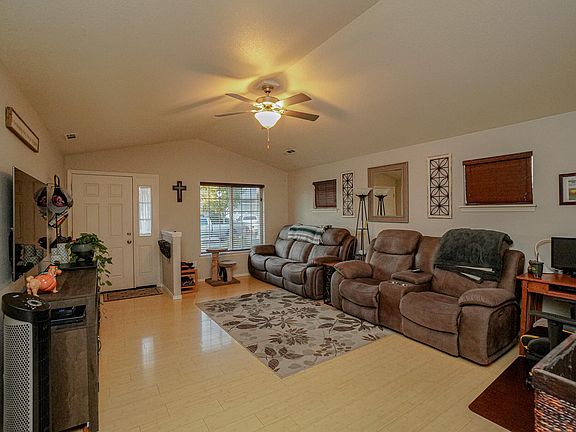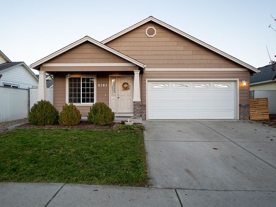 Beautifully maintained 2007 built home. This charmer features open concept living, vaulted ceiling with fan, bamboo laminate flooring, granite kitchen countertops with plenty of cabinet and counter space, pantry, carpeted bedrooms, tiled bathrooms, master suite has vaulted ceiling with fan, door to the back patio, dual sinks with granite countertop, walk-in shower, walk-in closet, gas heating and hot water heat, in-ground front and backyard timed sprinklers, solar panels installed in 2022, covered back patio for barbequing with a view of Mount McLoughlin and a welcoming front porch. HOA covers nearby half acre park for your enjoyment. Take a tour today!