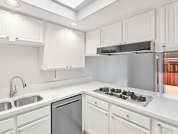 This charming 3 bedroom, 2 bathroom home offers 1214 square feet of spacious living. High vaulted ceilings and skylights add a bright and spacious feeling to the entry way and living room. The kitchen features upgraded stainless steel appliances, double bowl sink, custom all white cabinetry and matching white countertops creating a beautiful modern aesthetic with plentiful storage space. The kitchen leads to a generously-sized dining room complemented with access to a private wrap-around backyard. This home offers an oversized master bedroom with upgraded private bathroom and large closet and two other spacious bedroom sand upgraded bathroom. Two car garage with washer and dryer! With hardwood-like floors, new paint, and recessed lighting throughout, this home is move-in ready! Quick 10 minute drive to the beach and access to community pool and spa! Come experience this gem before it is gone!