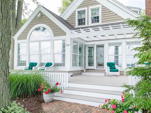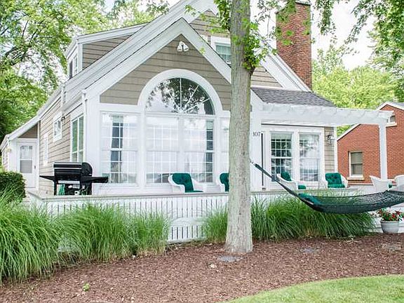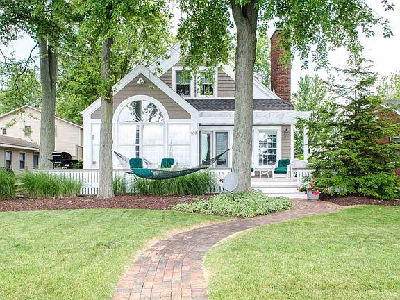 Sunrise Drive is such a beautiful place on Lake Wawasee. This lake home provides 50 feet of lake frontage on Indiana's largest natural lake, with expansive views of the water and mature trees all around. Lake Wawasee has a long standing history of being a summer vacation area since the 1800's, drawing residents from all over the tri-state area, with many from Chicago and Indianapolis. While many homes around the lake are intended primarily for summer use, the lake is certainly a place to enjoy in all seasons and reside on a permanent basis as well. Lake Wawasee offers over 3500 acres of water and 25 miles of shoreline to enjoy boating, skiing, tubing, and many more activities. Walking up to this home, there is a beautiful brick walkway and the most wonderful, secluded courtyard area in the back, that still has a view of the water. Inside this home, you are greeted by walls of windows that look out unto the water, and bring brightness to the entire main level. This home has an open concept with a spacious kitchen, a fireplace in the living room area, as well as a sitting area with a vaulted ceiling, surrounded on three sides by large windows. It is the perfect place to enjoy your morning coffee or a good afternoon book. The light colored hardwood floors on the first level just add to the beauty of this lakeside home. Also on the main level is a laundry room and the master suite, complete with French doors and a skylight in the master bath. Upstairs there are multiple bedrooms that offer plenty of space for family and guests. The home has over 2800 square feet of living area. There is also a guest house with another 730 square feet, complete with its own kitchen, living room, bathroom and bedroom on a second level. As wonderful as the inside of this home is, the outside is just as impressive! Surrounded by mature trees, complete with a large deck, and with plenty of yard space to enjoy all of your lakeside activities. There is even more brick walkway leading out to the large pier included in this sale. The views of Lake Wawasee are beautiful; a prime spot on the water with instant access to the lake. This wonderful home on Sunrise Drive could be just the property for you.