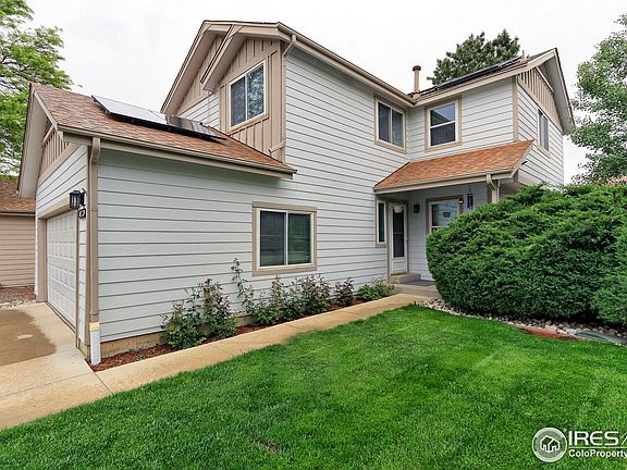 Home is loaded w/ upgrades that includes kitchen w/ custom cabinetry, imported slab granite counters & stainless appliances. Every bath has been renovated w/ Travertine tile floors surround & designer inlays & new fixtures & treatments. Roof is newer & Seller recently had solar installed w/ blown in insulation & attic fans to make this home incredibly energy efficient. Basement is fully finished & has a renovated 3/4 bath. There is a tankless water heater & Nest & myQ garagE that are bluetooth capable. Home is consistently at or better than " your most energy efficient neighbors" per Xcel Energy reports. Solid Oak floors lead you upstairs to the laundry room w/ LG front loaded washer/dryer that will stay as well as the primary suite wi/ private renovated bath. There are 2 other bedrooms that include an office/bed with solid Cherrywood shelving wall. Home is steps from the pool, clubhouse and tennis courts. Stanley Lake walking/biking trails are just down the street.