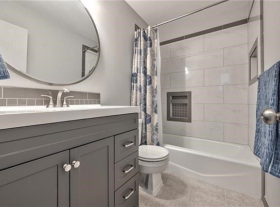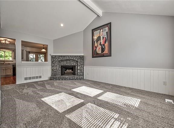 Ditch the rent and enjoy living in your own home in this great Overland Park location. The main floor features a large living room with vaulted ceiling and fireplace, updated kitchen, 2 bedrooms and a beautiful bathroom. All living on one level! The lower level offers an additional living space, 3rd bedroom and combined bathroom and laundry room. Everything is sparkling clean and new: paint, carpet, granite counters, light fixtures, bathroom vanities and tile. The spacious deck is a perfect space for enjoying the outdoors and the flat backyard has ample room for play, pets and gardening. The roof is 2 years young and windows and siding are newer. The location can't be beat with easy highway access to I-35 and 69 Hwy to get anywhere in the city. Refrigerator, washer and dryer all stay. Come make it yours!