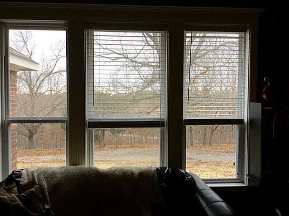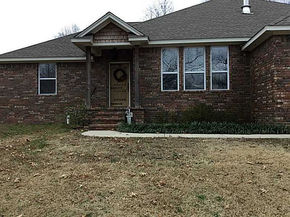 Nice brick home on acreage. Split floor plan. WB fireplace in Living Rm; loads from garage, keeps mess out of house. Pantry plus additional shelving in utility rm. Garden spot; apple, peach & pear tres.Granite all countertops. rural water.Covered patio., Fire pit. Concrete driveway from street. Total electric.