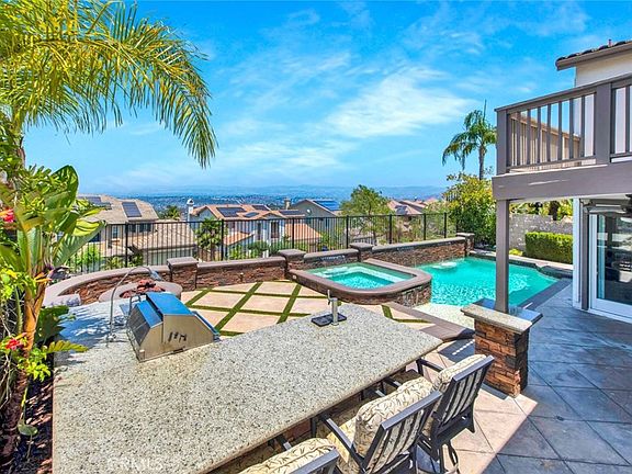 Welcome to 8265 E Norfolk Avenue, a Stunning Dream Home Located on an Interior View Lot in the Serrano Heights Community of Orange. This Move-In Ready Home Enjoys a Brilliant Open Floor Plan and Showcases Four Bedrooms, Three and a Half Bathrooms, Main Floor Office (Potential Fifth Bedroom), New Carpet, Mountain and City Light Views, and So Much More! The Formal Living Room Opens to the Dining Room and Enjoys Recessed Lighting, Plantation Shutters, and Sits Adjacent to Kitchen and Family Room Which is Perfect for Entertaining. The Gourmet Kitchen Enjoys Ample Counter and Cabinet Space, Granite Counters, Stainless Steel Appliances, Island, Walk-In Pantry, and Breakfast Nook with Backyard Access. The Light and Bright Family Room Features a Cozy Fireplace, Built-In Entertainment Center, and Garage Access. The Spacious Master Suite Enjoys Custom Built-Ins, Balcony Access with Breathtaking Views, Dual Vanities, Walk-In Shower, Separate Tub, and Large Walk-In Closet. The Private Entertainer’s Backyard Features Pool, Spa, Covered Patio, Outdoor Kitchen with Keg Tap, Sink, Refrigerator, and Built-In BBQ, Firepit, and Incredible Views! Conveniently Located Laundry Room on the Second Floor with Built-In Cabinets and Sink. Three Car Garage (Tandem Third Car Garage Currently Used as Storage Room) with Direct Access, Epoxy Floors, Built-Ins, and EV Charging System. Additional Upgrades Include: Newer Water Heater, Owned Water Softener, Surround Sound Speakers, and Leased Solar. Easy Access to the 91 and 55 Freeways. Do Not Miss Out on 8265 E Norfolk Avenue!