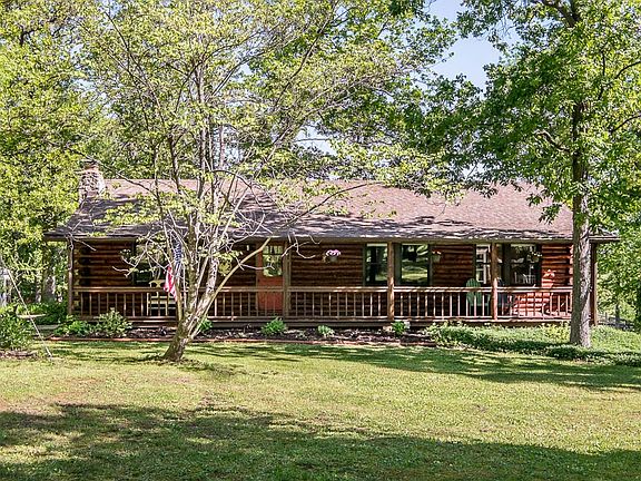 PEACEFUL AND TRANQUIL, UPDATED LOG HOME, yet close to major highways & within 30 miles from St Louis County! As you drive down the long, tree lined driveway your stresses of the day disappear. Park in front near porch or pull into garage/barn & walk in thru kitchen. 3 bdrm, 2 full updated bath home is so inviting you feel like 'home' the minute you walk in. Sit on full length front porch on nice days & enjoy seeing nothing but trees on your property. Go out back & your view is rolling hills with trees scattered on the skyline. Step onto your deck from mstr bedroom in the morning w/your coffee. It overlooks the Riding/exercise arena with 2 stalls, watering system and shed in the pasture. In the winter, sit next to an authentic wood burning fireplace in great/living room. UPDATES: Well pump and wiring (2011), Windows, Furnace and home fully stained (2014), New septic aerator and cleaned out (2015), brand new skylights and wood surrounds (2016). ALL YOU HAVE TO DO IS MOVE IN! MUST SEE!