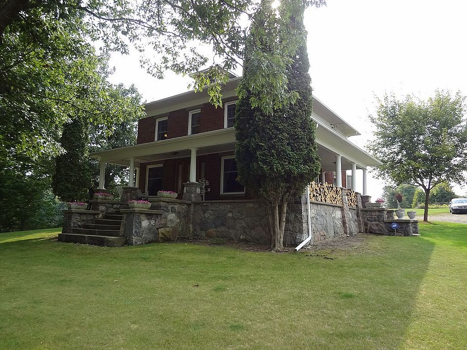 A beautiful and historic red brick craftsman home, built in 1910 and set on nearly 50 rolling acres with a hand cut fieldstone wrap around porch and swing! Features include 4 bedrooms, living room, dining room, kitchen, two huge baths, an enclosed 15 ' X 18 ' sun porch and concrete patio. 8 " clear (poured walls and floors) basement with updated wiring, plumbing and heating, 90 foot well and double septic tank system. Home is wall insulated throughout for energy efficiency with 34 " of attic insulation and 22 high efficiency low E windows. Floors are 1.5 " thick with quarter sawn oak moulding and beveled glass on the first floor with number one pine trim on the second. The entire home features handmade 5 panel doors and elaborate trim. Lopi airtight fireplace inserts a quarter sawn mantle while 40 ' of stainless insulated liner assures warm winter evenings no matter what the weather! No issues with this quality built and well maintained farmhouse! A patio outside overlooks your own private pond filled with wildlife. There are a total of three ponds, hardwoods and walking trails on the property and plenty of large deer for the sportsman.The property boasts walking trails, a fenced 40 x 70 garden, two car detached garage with 240 V, a beautiful and original hand hewn barn and a unique five swing white oak / western cedar swing set with fire pit where no expenses were spared. Unlike some farm homes this one has loads of storage space too! Plenty of cabinet space in this spacious kitchen with built ins … each bedroom having individual closets, custom built storage in the basement with a huge coat closet and a full attic! Conveniently and centrally located to Grand Rapids, Lansing, Big Rapids and Mt. Pleasant. Just off M46 and US131 and convenient to the Heartland trail. This area has a multitude of lakes for boating, fishing and family fun! This is dream home comes at an affordable price offering fantastic value ... perfect for the horse lover, young family, self sufficient organic farmer or gentleman farmer/retiree. Add an old dog and a good cup of coffee and watch the world go by!