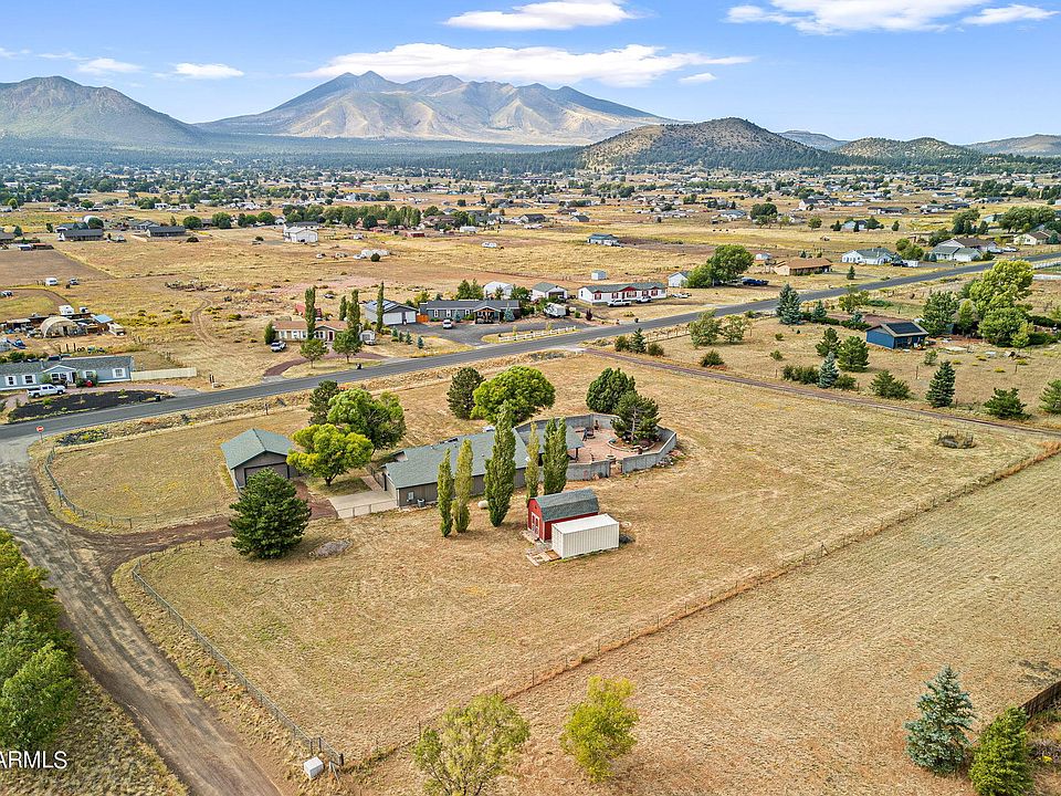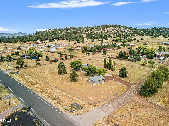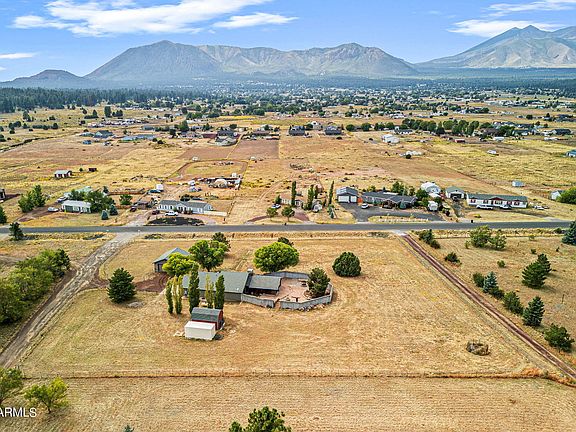 Are you looking for a lot of space, great views, and a short drive to fun places? Then this home is perfect for you! Located just 15 minutes east of Flagstaff in the popular Doney Park area, this wonderful 3-bedroom, 2-bath, 1,472 sq. ft. ranch-style home has so much to offer. Sitting on 2.7 acres, which is fully fenced, it's the perfect spot for your pets to run around! There are also 3 extra buildings: a big 24 x 30 workshop with a 2-car garage, a 21 x 12 shed, and a 20 x 8 storage container. If you love spending time with family and friends, the outdoor space is amazing! You'll find a beautiful covered porch, flagstone paths, and a wall around the yard to keep things private and protected from the weather. Imagine your family and friends gathered around the fire pit, roasting marshmallows, or relaxing in the Jacuzzi while looking up at the starry night sky. Inside, you'll enjoy stunning views of Mount Eldon and the San Francisco Peaks through a big window in the living room and kitchen, all in one open space! Don't miss out and come take a look!