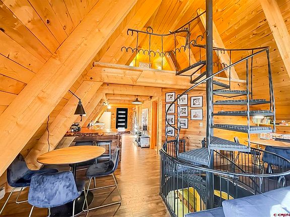 Crystal Creek runs through this fabulous property with a year-round home or RECREATION RETREAT on 8.6 acres! Enjoy ice skating on the creek all winter, snowshoeing, snowmobiling, hunting, fishing and long summer nights by the outdoor fire pit. Home easily SLEEPS 12 PEOPLE. This 3 BR 2 BA solid A Frame Cabin has a spiral stair case that goes from the finished walkout basement, through the lovely main floor and up to the loft. Main floor has a kitchen, master bedroom, full bath, dining area and spacious living room area with wood burning custom rock fireplace. Finished basement has a large den with 2 sets of bunk beds, game room area, bathroom, laundry room, storage room, vault, and one car attached garage. The spacious loft has 2 twin beds plus a private bedroom with a king sized bed. NEW DOORS, WINDOWS, OPENING SKYLIGHTS, flooring, carpet, and oven make this a home ready for winter. Brand NEW BACK DECK AND FRONT PORCH with built-in seating overlooks CRYSTAL CREEK, which meanders through the the beautiful meadow below. Views of the Black Canyon from the deck are awesome! The original barn and shed grace the meadow and are perfect for livestock. A charming chicken coop is set up and ready to go. Property is completely fenced in with a metal gate at the entrance. A caretaker for the home and property is available. Water rights included. NO COVENANTS OR DEED RESTRICTIONS OF ANY KIND!