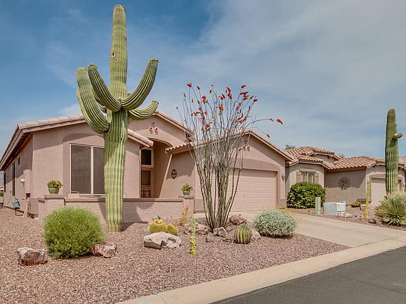 Situated on the golf course in the highly desirable community of Mountainbrook with incredible Superstition Mountain views! You are to sure to love this open, light & bright Saguaro floor plan with its vaulted ceilings, split bedrooms, den, and great room featuring a spacious kitchen with walk-in pantry, breakfast bar, GAS range, eating area and inviting living room, all with majestic views of the golf course and mountains! Wake up every morning to the picturesque views right out the window of your spacious master suite with ensuite bathroom complete with dual sinks, separate tub & shower private toilet room and walk-in closet. The second bedroom and den are located off the front affording privacy from the master suite. Whether you are simply enjoying a day at home or (SEE MORE)